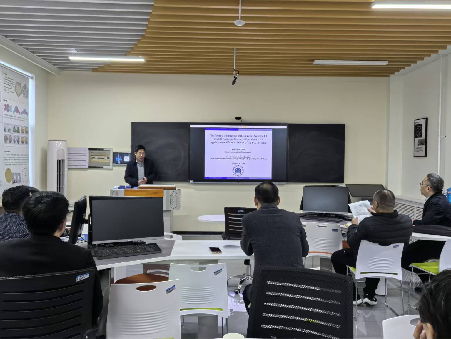 2025年10月20日上午,应数学与统计学院邀请,华东师范大学王元明教授在我校睢阳校区数学办公楼三楼310做了题为《积分平均L1(IAL1)分数阶导数算子的正定性及其在IAL1方法H¹范数分析中的应用 》的学术报告,报告由张斐然院长主持。