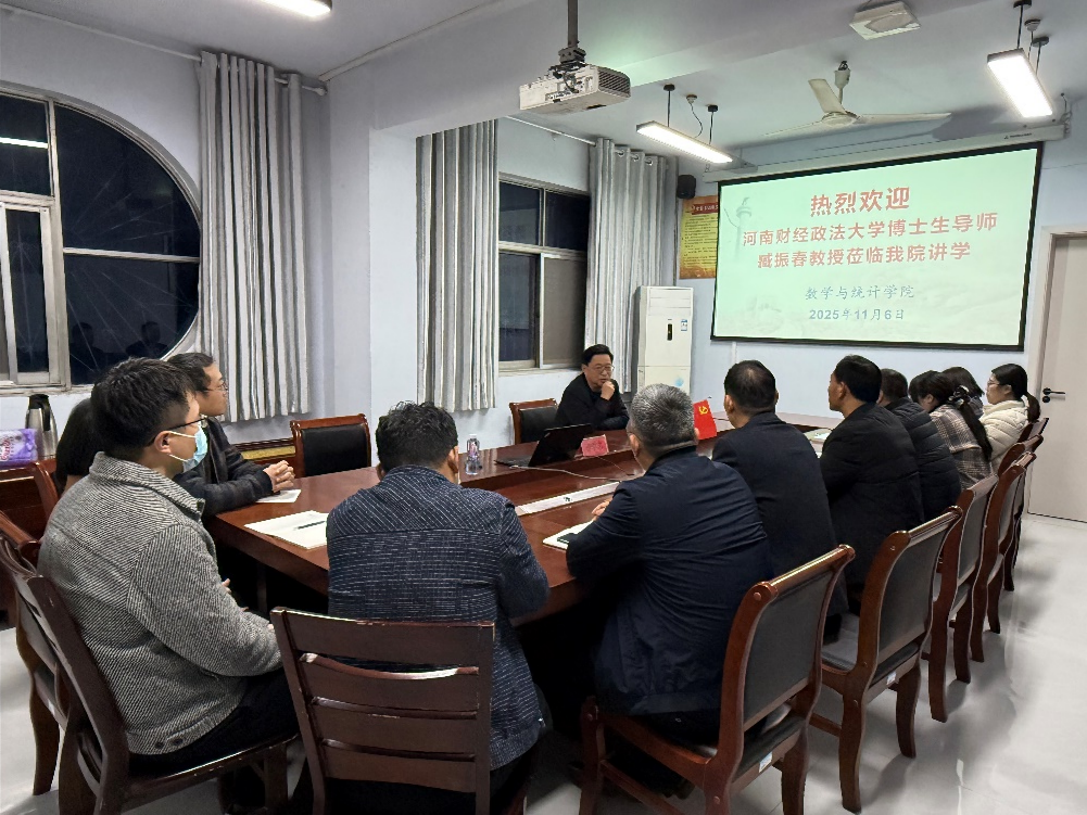 为进一步加强数学学科建设,凝练优化学科发展方向,11月6日,应数学与统计学院邀请,河南财经政法大学二级教授、博士生导师臧振春教授在我院204会议室作了题为“数学学科建设与青年教师发展”的专题报告。报告会由数学与统计学院院长张斐然教授主持,学院部分博士及教师参加了此次报告会。