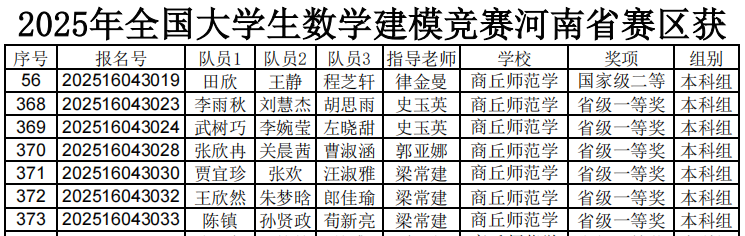 近日,两项全国性高水平建模赛事公布评选结果,商丘师范学院学子在2025年全国大学生数学建模竞赛与2025年全国大学生统计建模大赛中表现亮眼,累计斩获国家级奖项2项、省级奖项32项,充分展示了我校学生扎实的专业素养与突出创新实践能力。