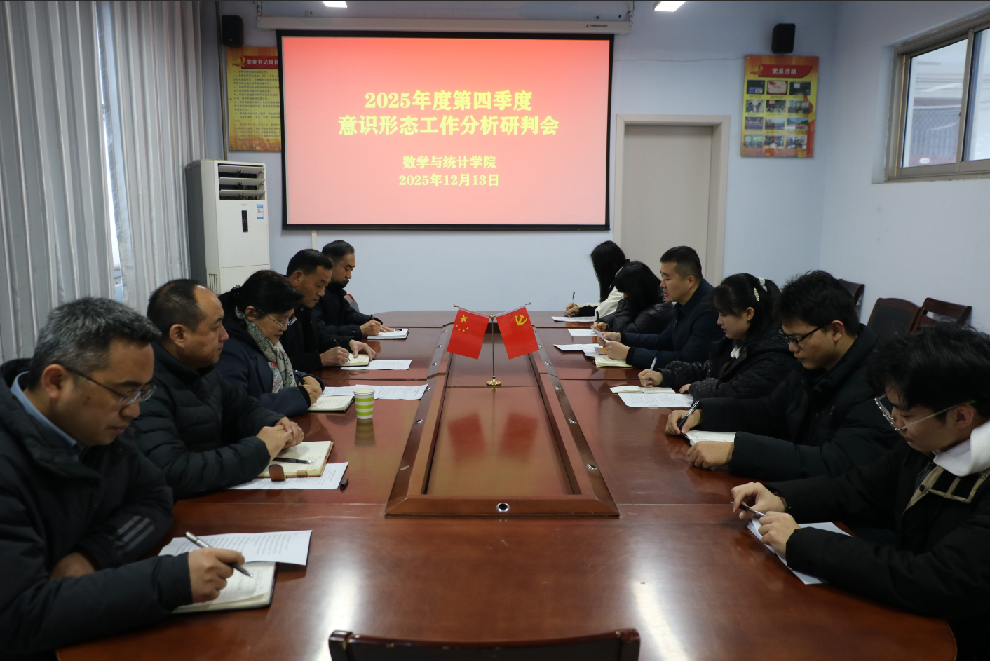 12月13日,数学与统计学院在数学楼204会议室召开2025年第四季度意识形态工作分析研判会。副校长韩桂玲出席会议,学院领导班子成员、全体辅导员及学生代表参加。会议由学院党委书记孟学超主持。