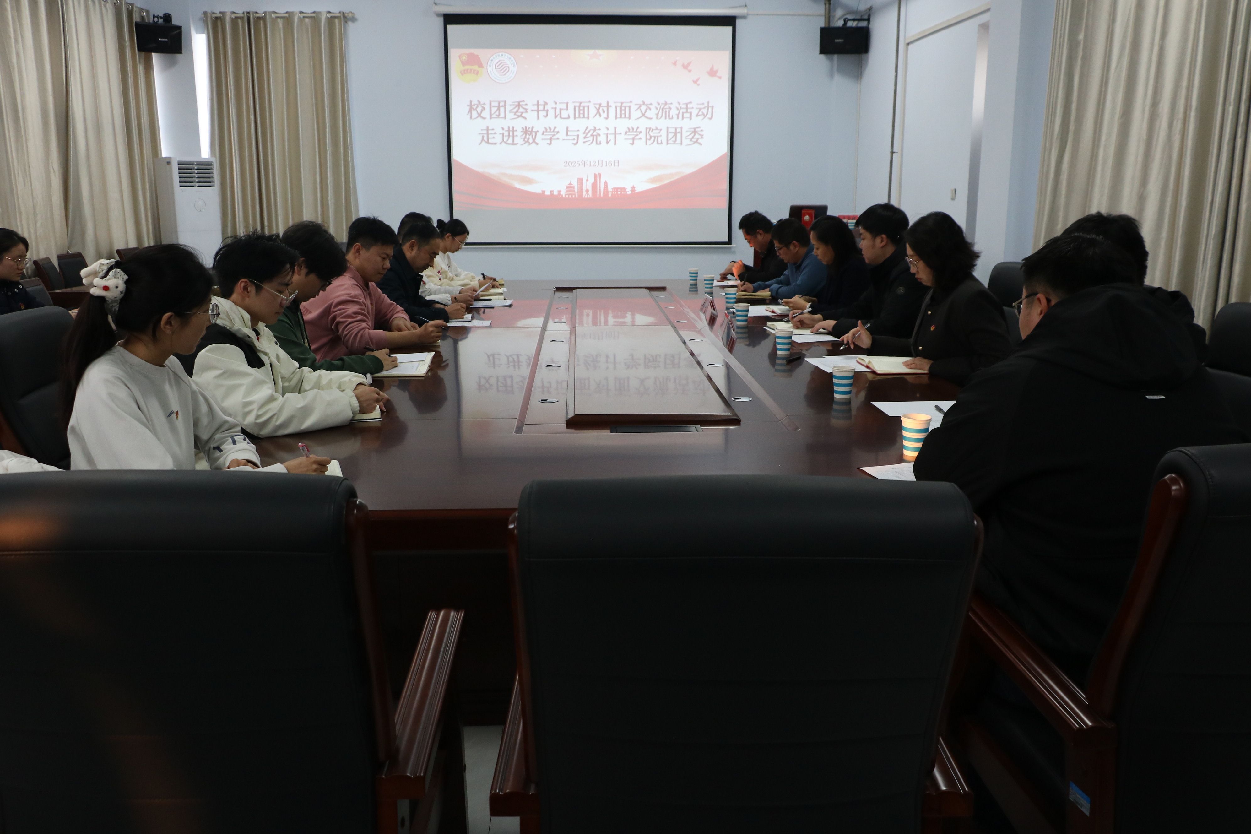 12月16日,校团委书记刘培培一行7人到数学与统计学院,开展“校团委书记与基层团支部书记面对面交流”活动。数学与统计学院党委副书记郭广君、团委工作负责人李昊阳和学院团员青年代表共计12人参加了此次活动,活动由李昊阳主持。