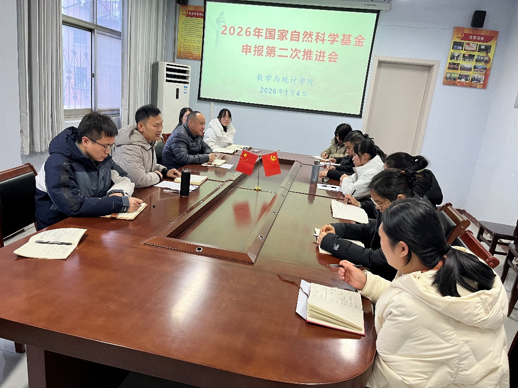 为扎实推进2026年国家自然科学基金项目申报工作,进一步提升申报质量与命中率,1月4日,数学与统计学院在204会议室召开了2026年国家自然科学基金申报第二次推进会。会议由副院长刘磊主持,全院科研骨干和申报教师参加了会议。