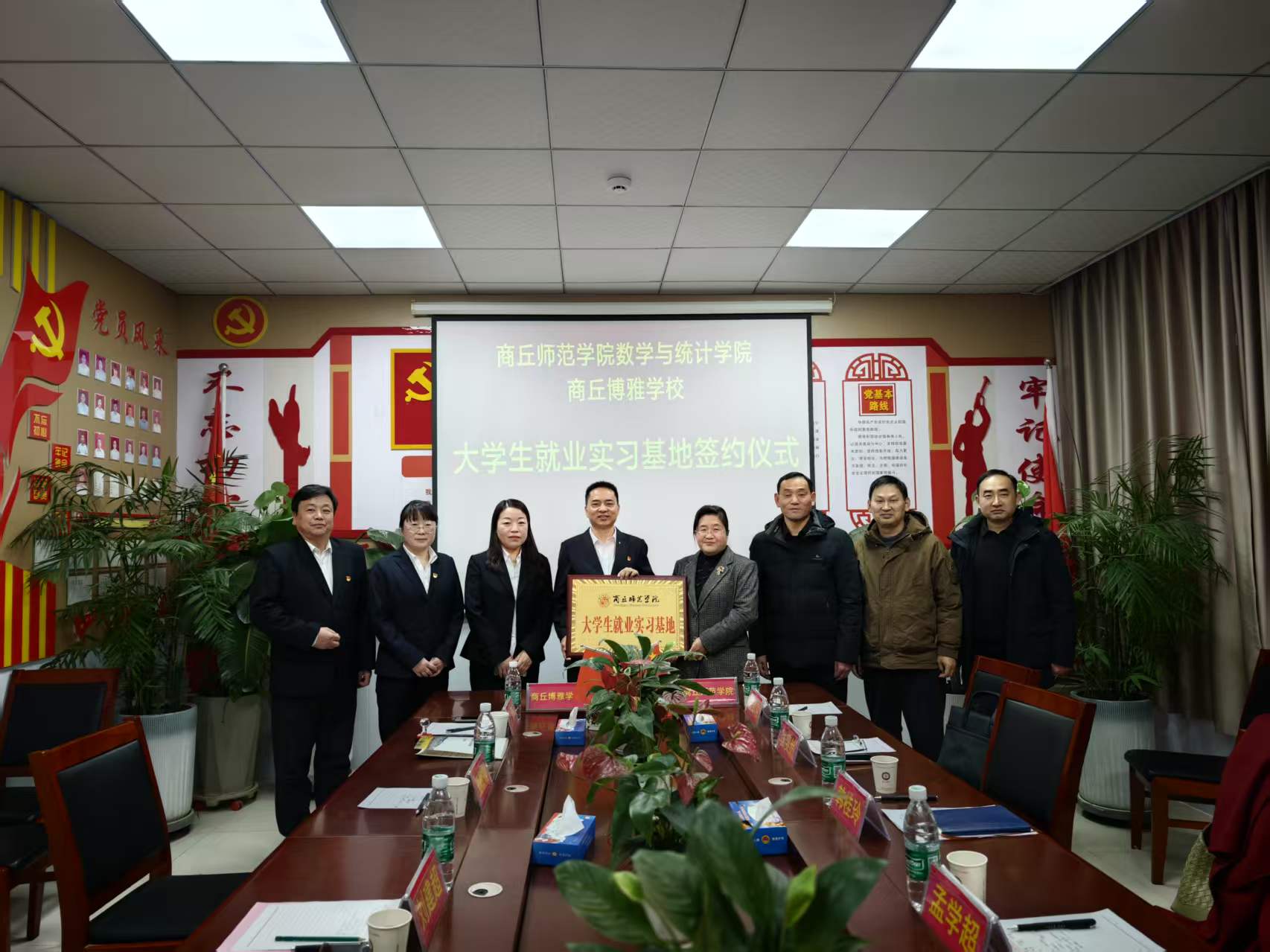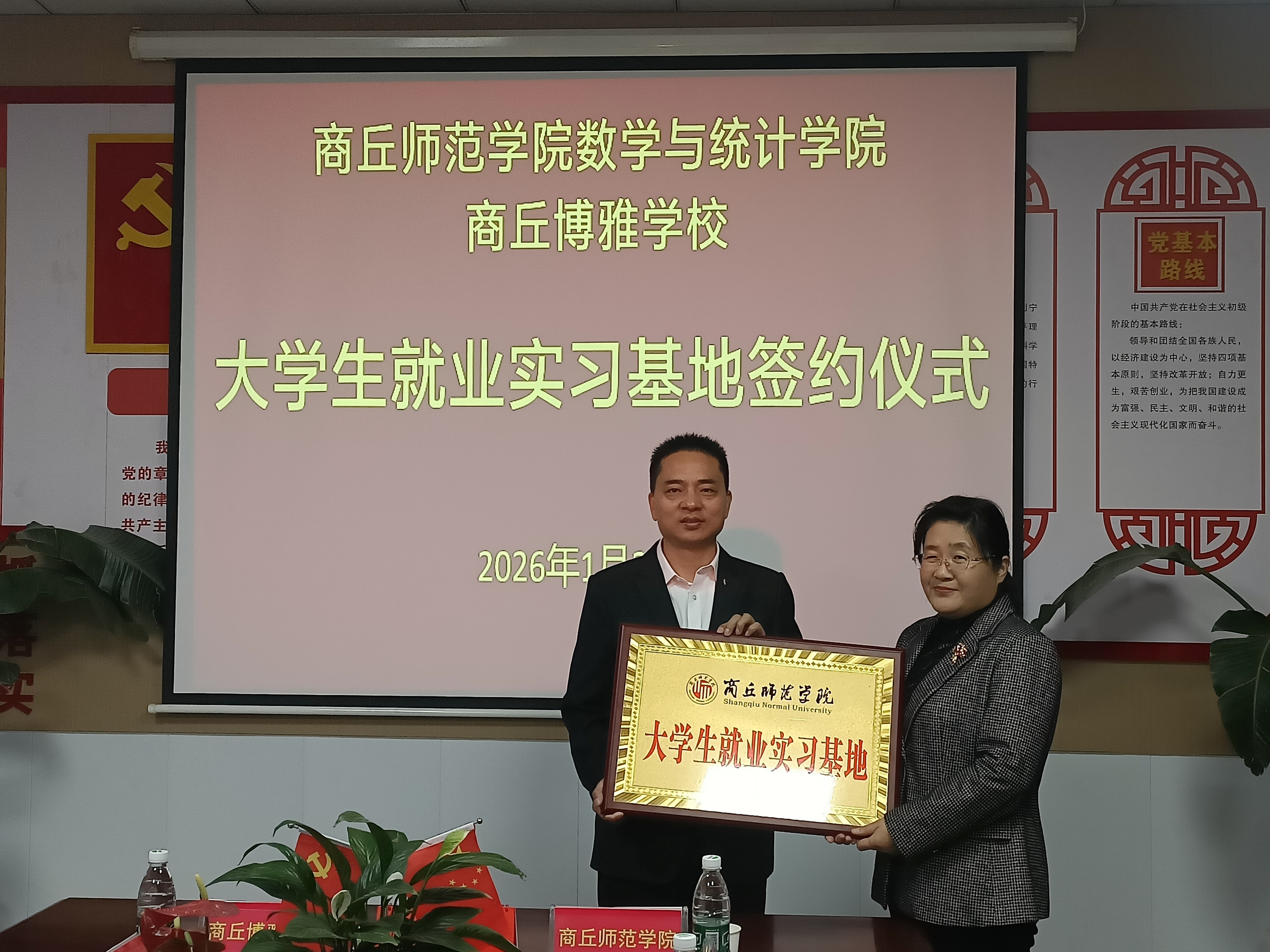 仪式上,双方共同签署了《商丘师范学院大学生就业实习基地协议书》,并举行“大学生就业实习基地”授牌仪式。