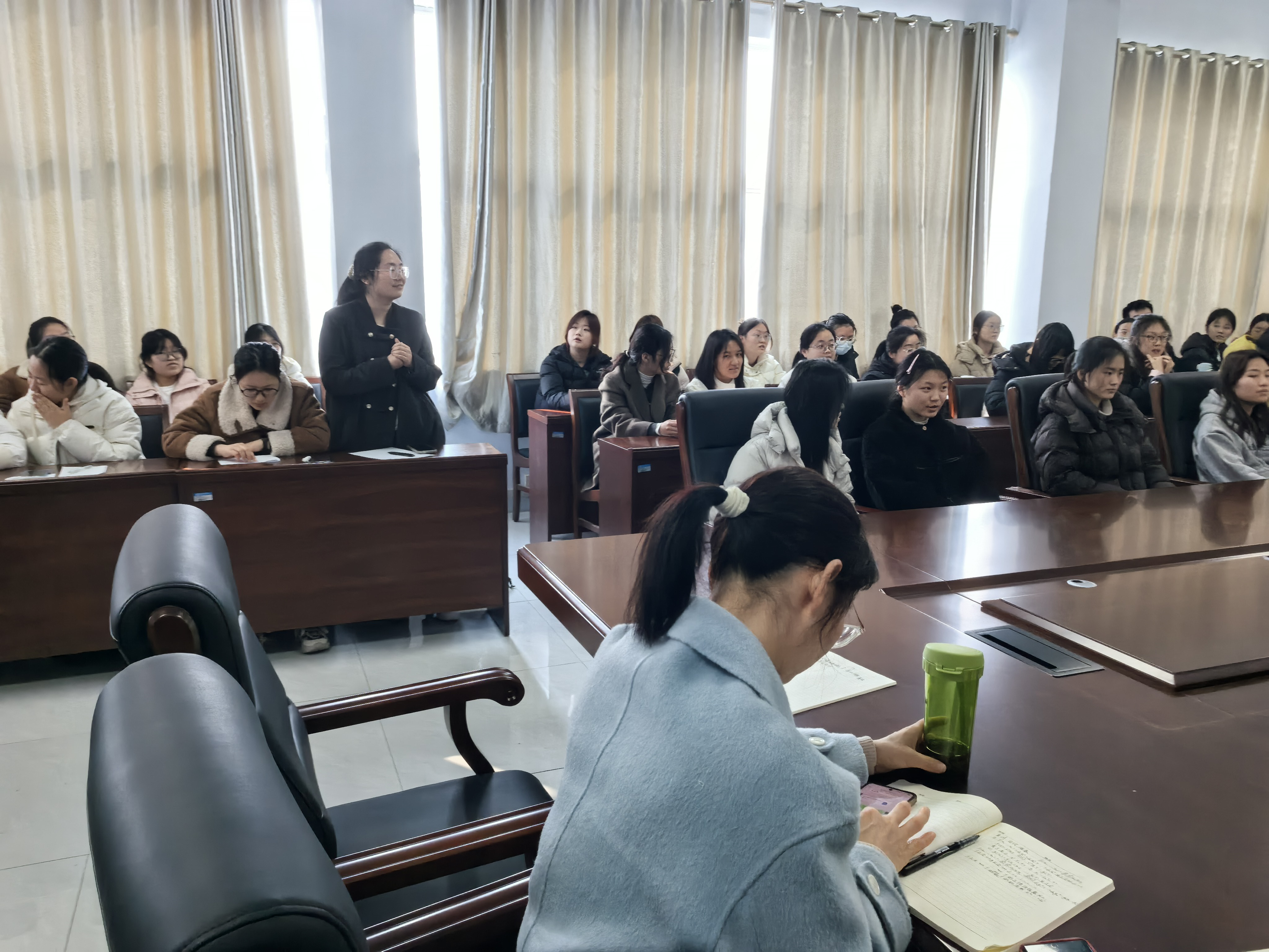 在互动答疑环节,同学们踊跃提问,问题涉及跨专业复试准备、导师自荐信撰写、调剂院校选择等方面。郭广君和与会教师逐一耐心解答,提出了具有针对性和操作性的建议。同学们认真聆听、详细记录,纷纷表示此次辅导会内容充实,有效缓解了备考焦虑,增强了应对复试与调剂的信心。
