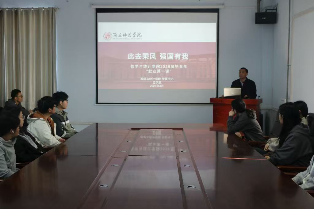 为帮助2026届毕业生认清就业形势,树立科学就业观、择业观,提升就业综合竞争力,数学与统计学院于2026年4月24日开展以“此去乘风 强国有我”为主题的毕业生就业指导第一课活动。本次课程由学院党委书记孟学超主讲,2026届毕业生代表参加。