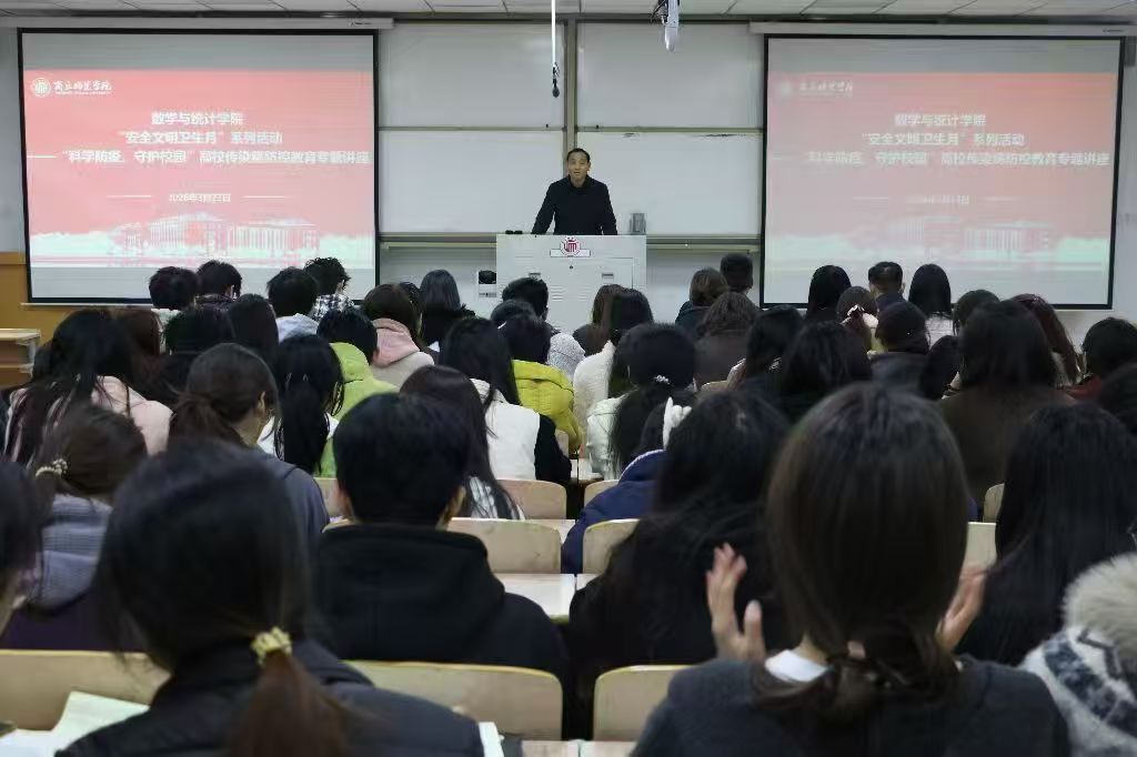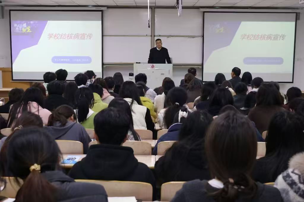 为深入推进“安全文明卫生月”活动,切实保障师生身体健康,有效预防校园传染病的发生,3月23日,数学与统计学院邀请商丘市胸科医院结核病专家、主任医师伏志杰教授,在梁园校区行方楼117教室举办高校传染病知识宣传教育专题讲座。讲座由学院党委书记孟学超主持,党委副书记郭广君、全体辅导员出席,全院200余名学生参加。