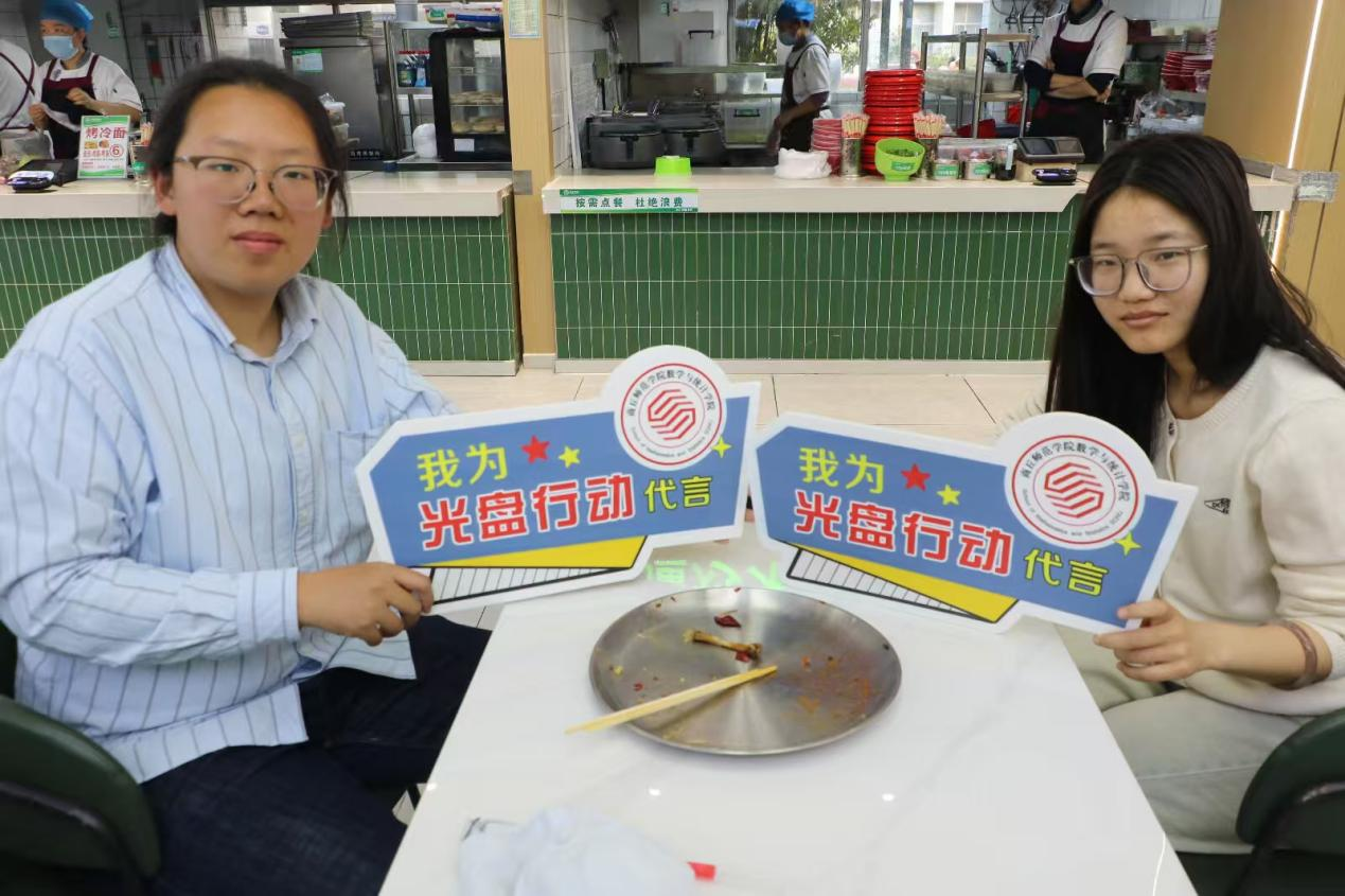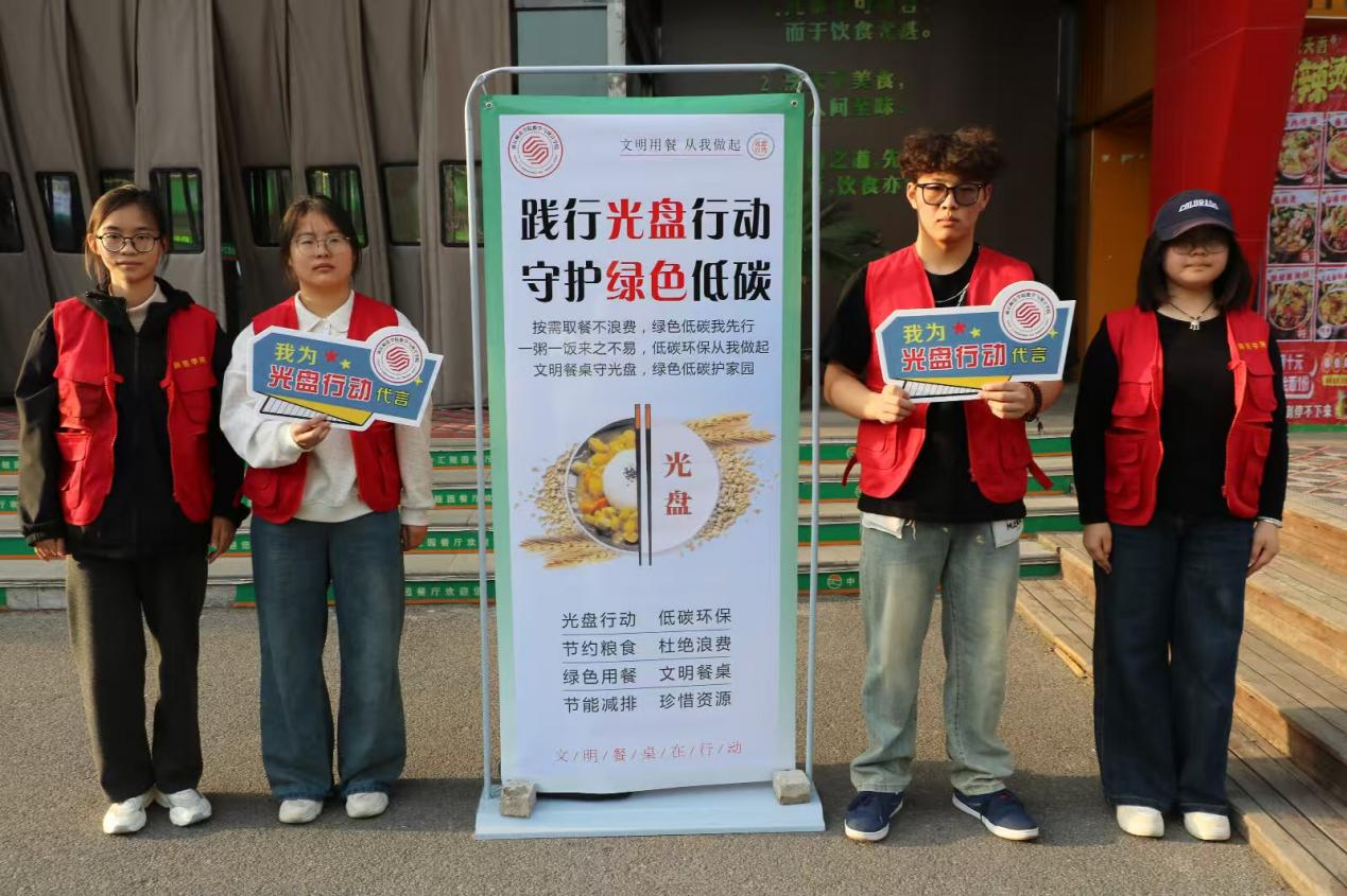 活动期间,学院在全校各食堂设立“光盘打卡”宣传点位,组织志愿者开展文明劝导,引导师生按需取餐、杜绝浪费;同时通过制定节能公约、评选光盘标兵等形式普及环保知识。同学们积极参与“光盘打卡”实践,手持“我为光盘行动代言”手牌做出文明承诺,以实际行动践行节约理念,进一步明确了绿色用餐、珍惜资源的行动方向。