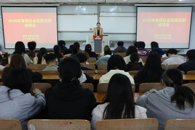 为全面总结寒假社会实践成果,促进学生实践能力提升与经验交流,数学与统计学院于3月28日上午在梁园校区智圆楼208教室举办“2026年寒假社会实践活动结项会”。本次活动由钟静雯主持,学院团委书记曹姝晗出席,参赛团队共49个。